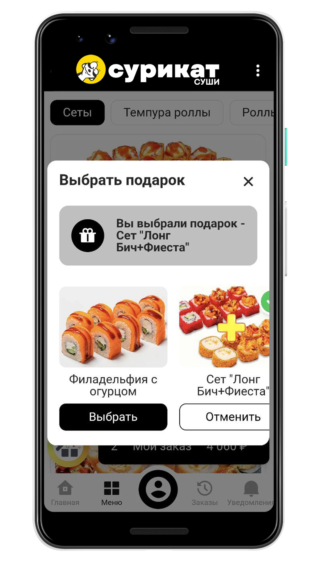 Доставка суши выгодно и легко! Получи 1000 подарочных бонусов за регистрацию! С помощью нашего приложения сможете: Быстро оформить заказ; Отследить в личном кабинете статус заказа; Получать и тратить бонусные баллы; Получать информацию о проводимых акциях, скидках, подарках и самых вкусных предложениях через пуш уведомления; Скачивайте приложение и заказывайте с выгодой! Приятного аппетита!