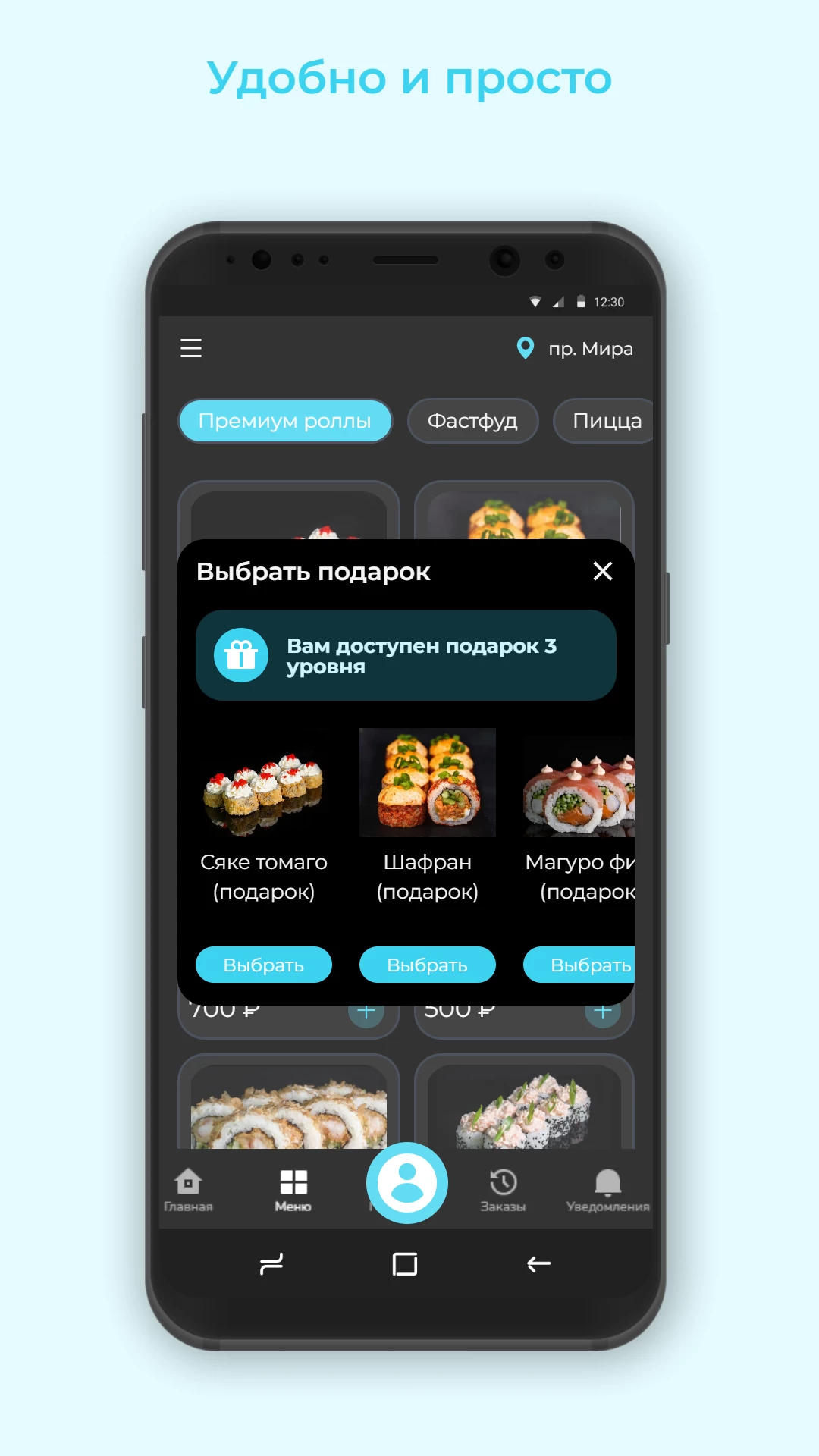 Доставка еды быстро и легко! С помощью нашего приложения: Вы сможете быстро оформить заказ; Отследить в личном кабинете статус заказа; Отредактировать свой профиль в личном кабинете; Получать бонусные баллы за заказы; Получать информацию о проводимых акциях и самых вкусных предложениях через пуш уведомления! Примите участие в различных акциях! Приятного аппетита!