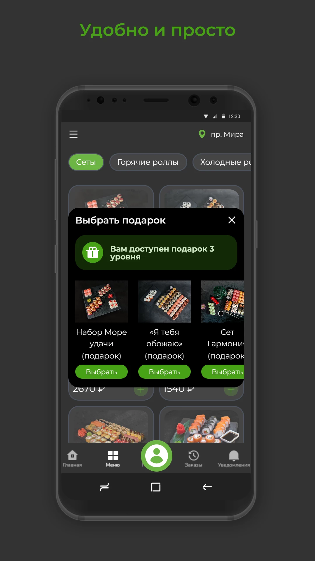 Доставка еды быстро и легко! С помощью нашего приложения: Вы сможете быстро оформить заказ; Отследить в личном кабинете статус заказа; Отредактировать свой профиль в личном кабинете; Получать бонусные баллы за заказы; Получать информацию о проводимых акциях и самых вкусных предложениях через пуш уведомления! Примите участие в различных акциях! Приятного аппетита!
